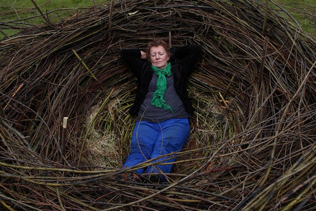 Er ontstonden twee ideeen, die ik beide graag vorm wilde geven. Ten eerste een groot NEST bouwen van wilgenhout, wat veiligheid en geborgenheid van mijn eigen nest moest uitdragen. Dit nest was ik immers verloren nu het ouderlijk huis verkocht was. Daarnaast had ik het symbool van het Huilend Kind wat zijn verdriet toont om wat dan ook. Ik herkende mezelf in dit verdriet wat ik voelde n.a.v. het verliezen van mijn vertrouwde warme nest.