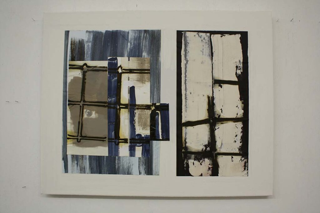 Het planmatige schuiven met rechthoeken, driehoeken en lijnen komt ook naar voren in een serie collages, meestal gemaakt in een formaat ter grootte van een flinke boekenkaft. Rust en gelijkmatigheid kenmerken deze abstracte, in contrasterende kleuren – vooral wit en bruin – samengestelde, blokachtige composities, die heel doordacht en secuur als een soort ingelijste kijkkastjes gemaakt zijn.